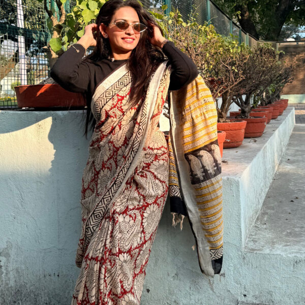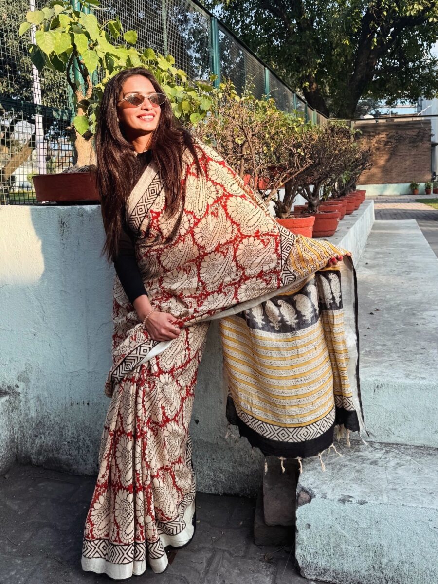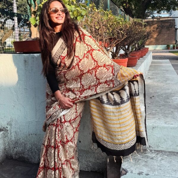 Hand block printed linen saree ✨